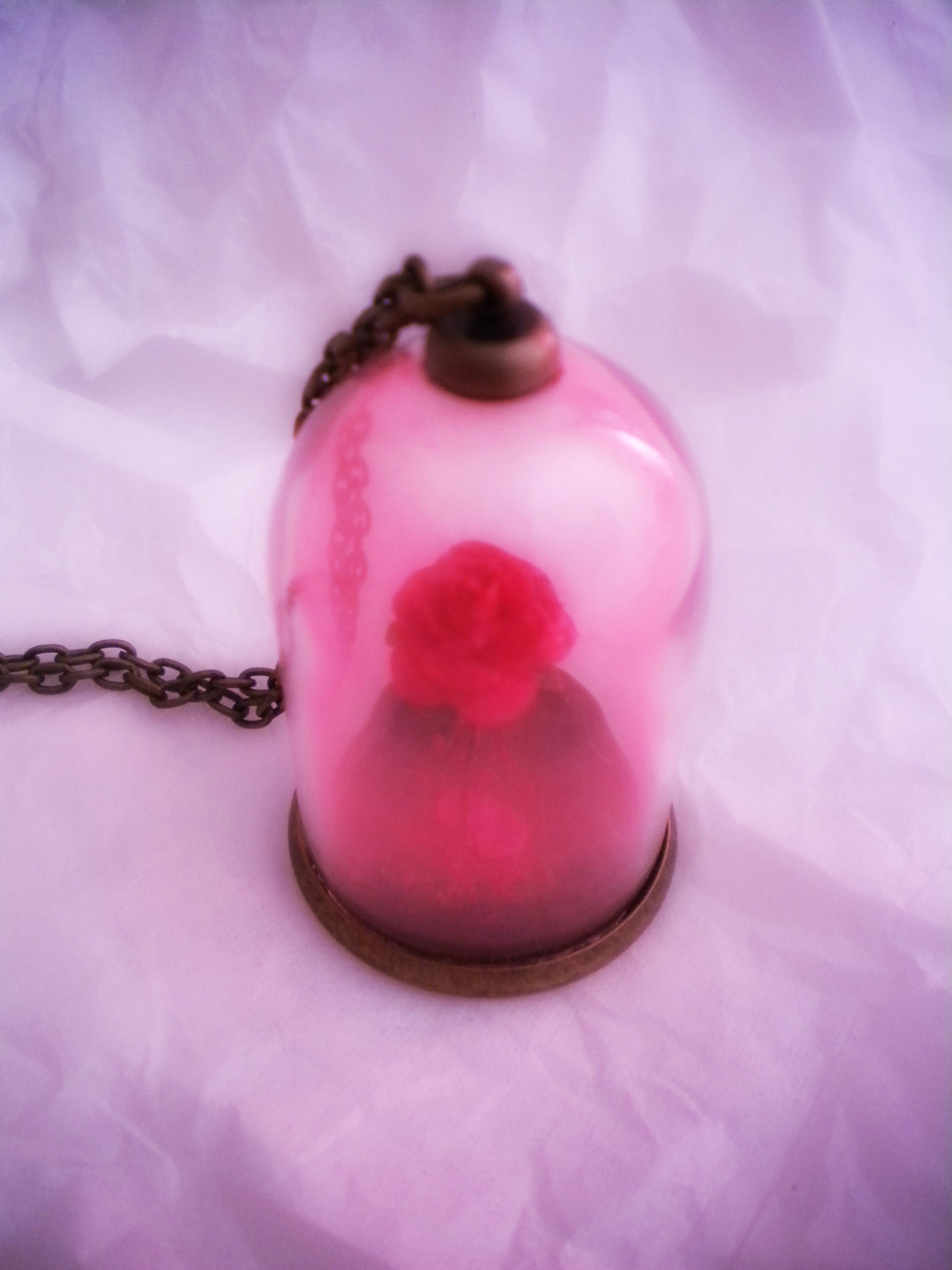 Rose in terrarium pendant his beauty/her beast valentines day,fairy tale movie victorian jewelry beauty and the beast necklace.