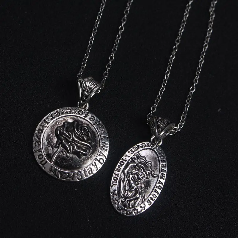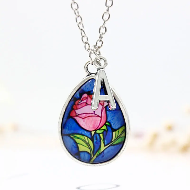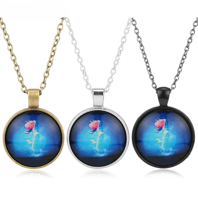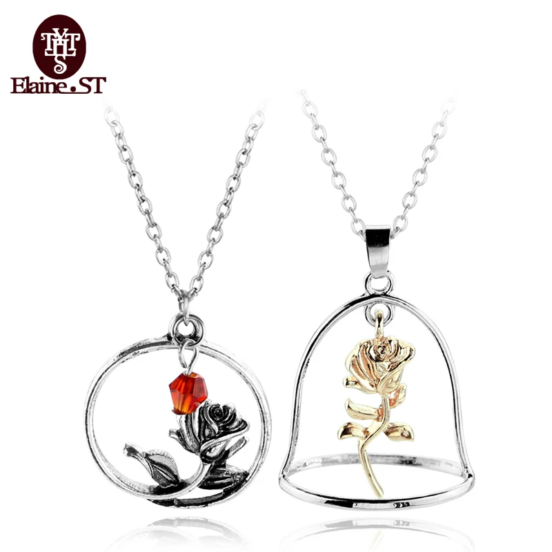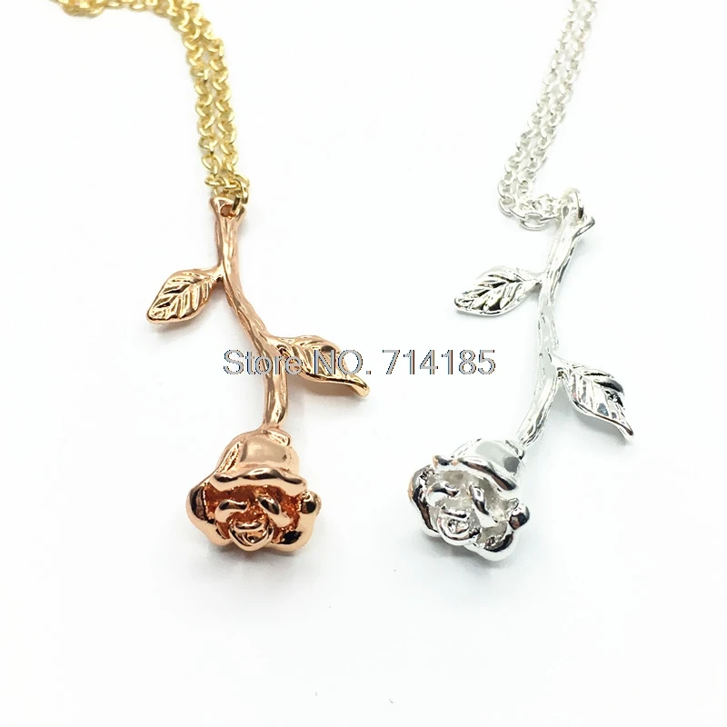 Rose flower pendant beauty and the beast necklace rose gold silver charm jewelry.