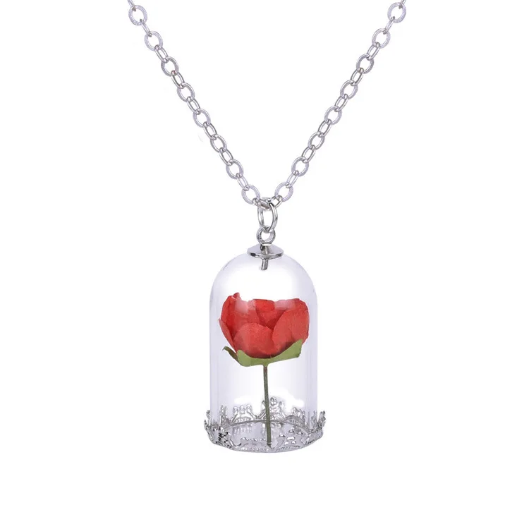2017 beauty and the beast necklace rose in terrarium pendant necklace.