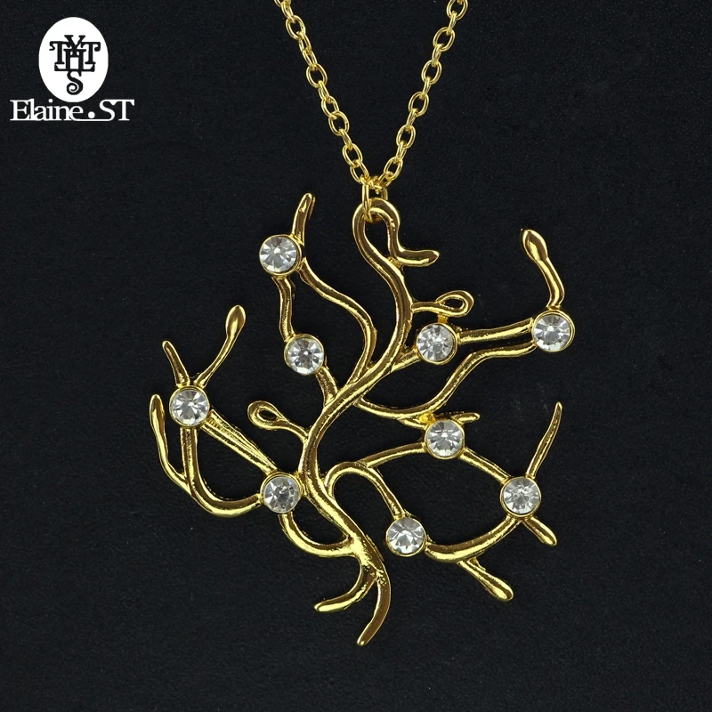 Golden tree necklace beauty and beast heroine gold twig pendant accessories gift jewelry woman charm.
