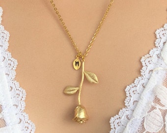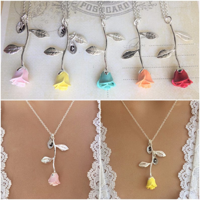 Mignonandmignon rose gold plated rose pendant necklace initial necklace bridesmaid jewelry for her.