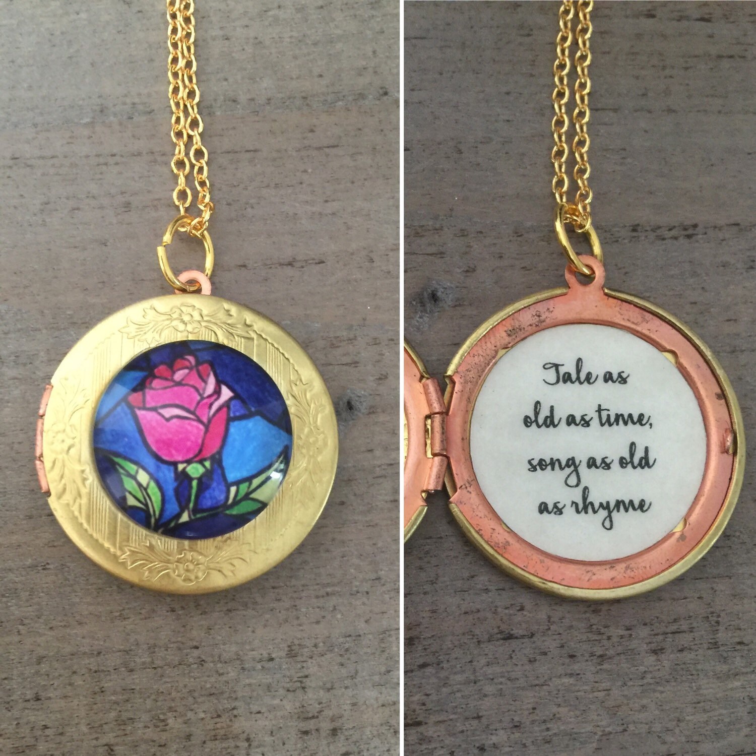 Lilsweetumsbowtique handmade stained glass beauty and the beast necklace.
