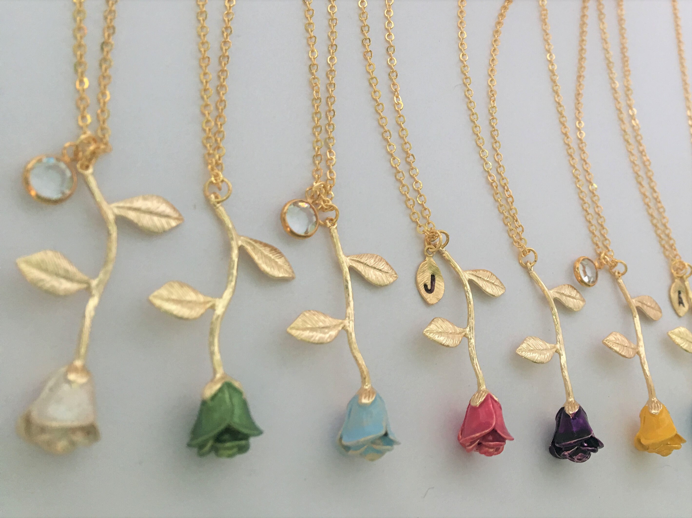 This dainty long stemmed rose necklace is my original design.
